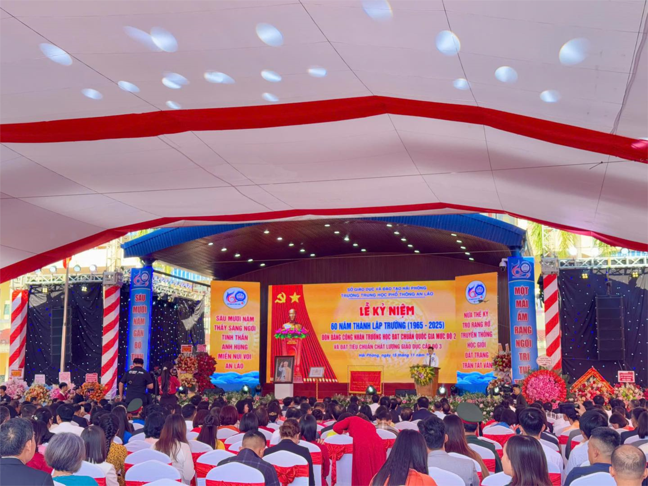 Sáng nay, thứ Bảy ngày 15 tháng 11 năm 2025, trong không khí trang nghiêm và đầy tự hào, Trường THPT An Lão đã long trọng tổ chức Lễ kỷ niệm 60 năm thành lập trường (1965–2025) — một cột mốc quan trọng đánh dấu chặng đường nỗ lực, cống hiến và trưởng thành của nhiều thế hệ thầy và trò.