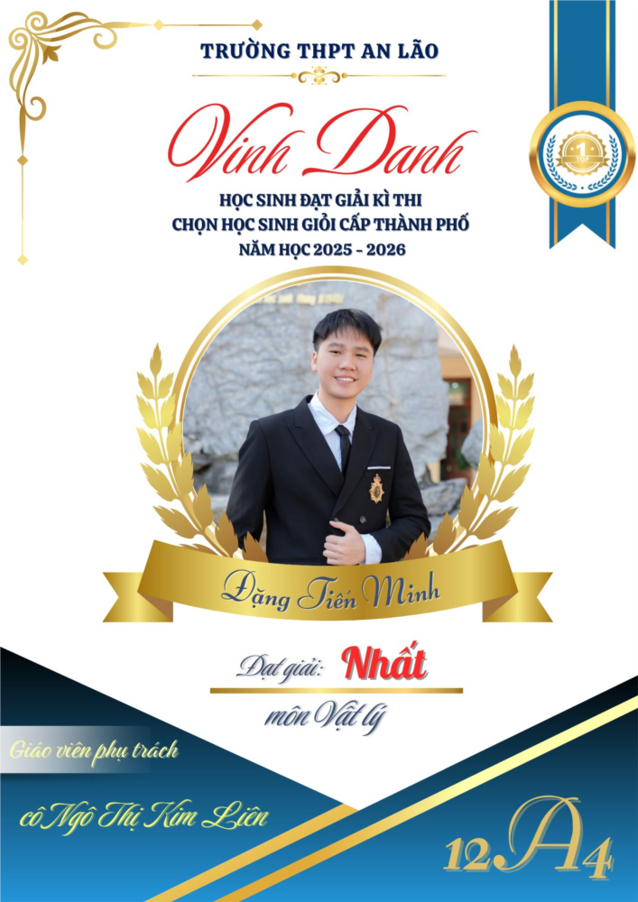 Hòa chung niềm vui kỷ niệm 60 năm thành lập trường THPT An Lão (1965-2025), thầy và trò quyết tâm thi đua đạt thành tích tốt trong chuyên môn. Tại Kỳ thi học sinh giỏi cấp Thành phố năm học 2025-2026, học sinh nhà trường đã đạt được những kết quả đặc biệt xuất sắc với 58 giải, qua đó vinh dự 𝐧𝐚̆̀𝐦 𝐭𝐫𝐨𝐧𝐠 𝐭𝐨𝐩 𝟏𝟎 𝐛𝐚̉𝐧𝐠 𝐱𝐞̂́𝐩 𝐡𝐚̣𝐧𝐠 𝐭𝐨̂̉𝐧𝐠 𝐠𝐢𝐚̉𝐢 𝐡𝐨̣𝐜 𝐬𝐢𝐧𝐡 𝐠𝐢𝐨̉𝐢 𝐭𝐡𝐚̀𝐧𝐡 𝐩𝐡𝐨̂́. Đ𝐚̣̆𝐜 𝐛𝐢𝐞̣̂𝐭 𝐱𝐞̂́𝐩 𝐬𝐨̂́ 𝟏/𝟗𝟒 𝐭𝐫𝐮̛𝐨̛̀𝐧𝐠 𝐓𝐇𝐏𝐓 𝐭𝐨𝐚̀𝐧 𝐭𝐡𝐚̀𝐧𝐡 𝐩𝐡𝐨̂́ 𝐯𝐞̂̀ 𝐬𝐨̂́ 𝐥𝐮̛𝐨̛̣𝐧𝐠 𝐠𝐢𝐚̉𝐢 𝐍𝐡𝐚̂́𝐭.