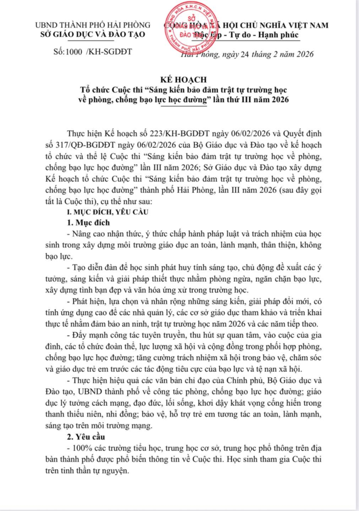Thực hiện Kế hoạch của Sở Giáo dục và Đào tạo Hải Phòng, cuộc thi chính thức được triển khai rộng rãi trên địa bàn thành phố.