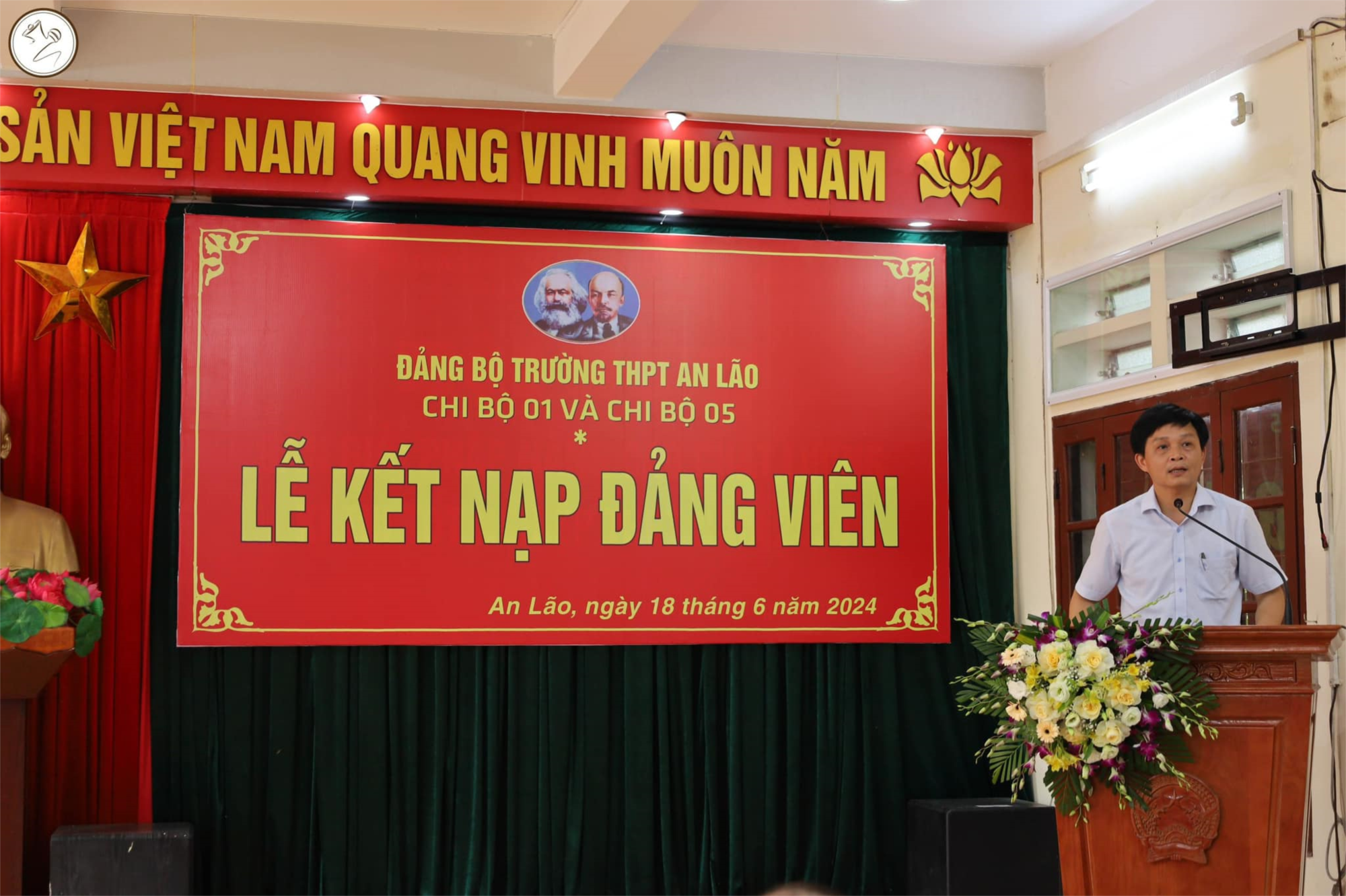 Ngày 18/06/2024, thực hiện sự chỉ đạo của Huyện uỷ An Lão, sự đồng thuận, nhất trí của Đảng uỷ Trường THPT An Lão, thực hiện kế hoạch công tác năm học 2023-2024, Chi bộ 1 và Chi bộ 5 tổ chức Lễ kết nạp 19 đảng viên mới trong đó 01 đồng chí trong Chi đoàn giáo viên và 18 đồng chí trong Chi đoàn học sinh. Về dự với buổi lễ có: