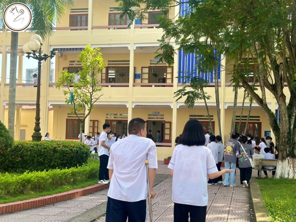 Ngắm trường, phóng tầm mắt ra xa là cả một khuôn viên xanh rộng với những hàng cây rợp tán, che mát cả một vùng. Mường tượng tới cái cảnh được ở dưới tán cây mà tán gẫu hay đá cầu thì thật tuyệt. Kìa, cả sân bóng rổ, bóng chuyền cho mình thỏa sức rèn luyện, giải trí nữa.