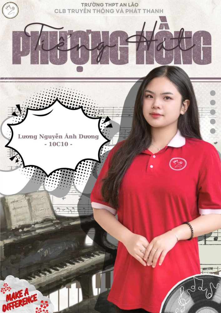 inh ra trong gia đình có truyền thống nghệ thuật và có niềm đam mê với âm nhạc dân gian, đến với hội thi “Tiếng hát hoa phượng đỏ”, bạn Lương Nguyễn Ánh Dương - Chi đoàn 10C10, Thành viên Ban Phát Thanh sẽ thể hiện tiết mục hát Chầu văn “Hải Phòng mời bạn tứ phương”. Với giọng ca nội lực và truyền cảm mạnh mẽ, Ánh Dương hứa hẹn sẽ mang đến cho khán giả màn trình diễn ấn tượng qua những âm hưởng truyền thống sâu sắc.