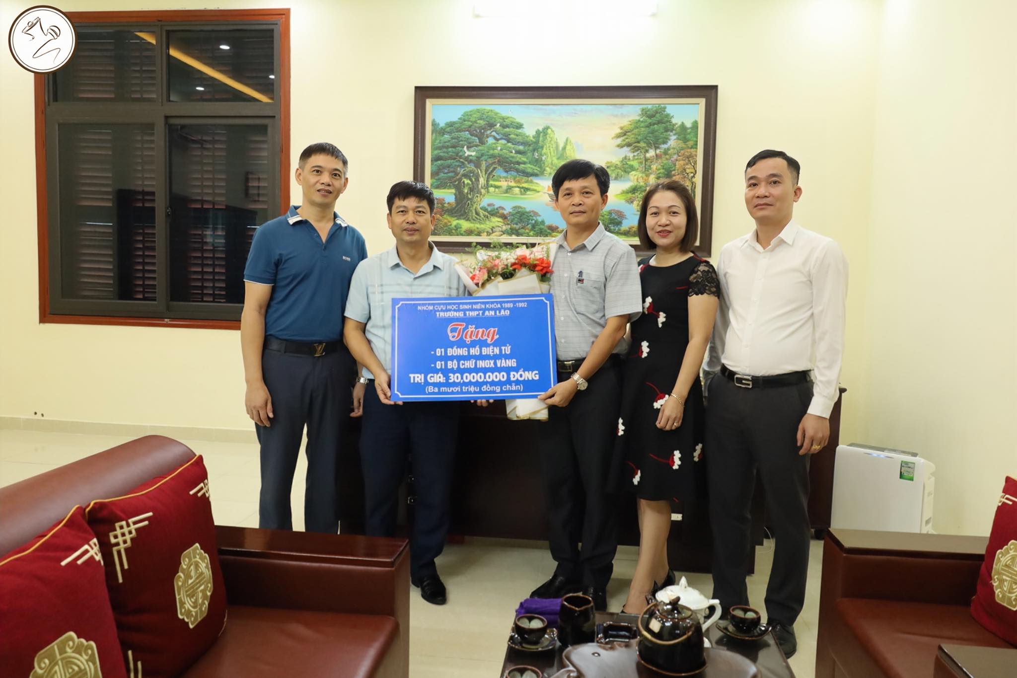 Chung 12A3; Phạm Văn Hải 12A5; Đặng Đình Thiết 12A4; Nguyễn Văn Huy 12A1; Phạm Hồng Hiệp 12A5; Bùi Thị Thanh Thuỷ 12A2 đã dành tặng nhà trường 01 chiếc đồng hồ điện tử và 01 bộ chữ inox vàng trị giá 30.000.000 (Ba mươi triệu đồng).