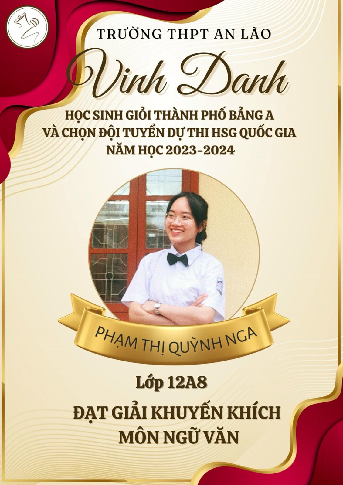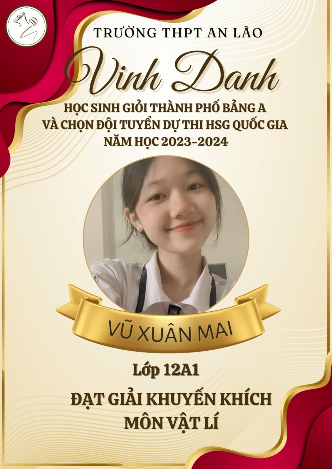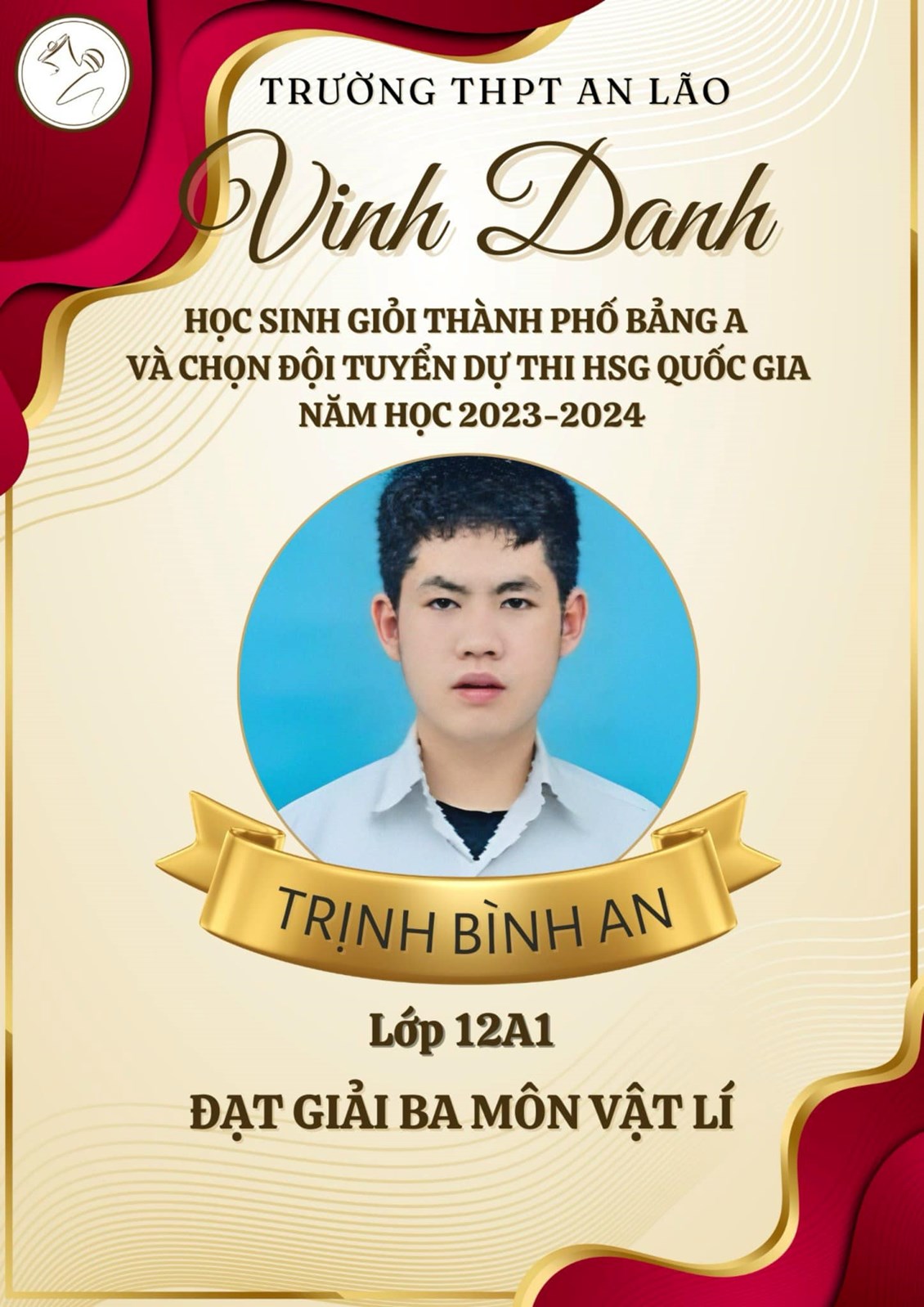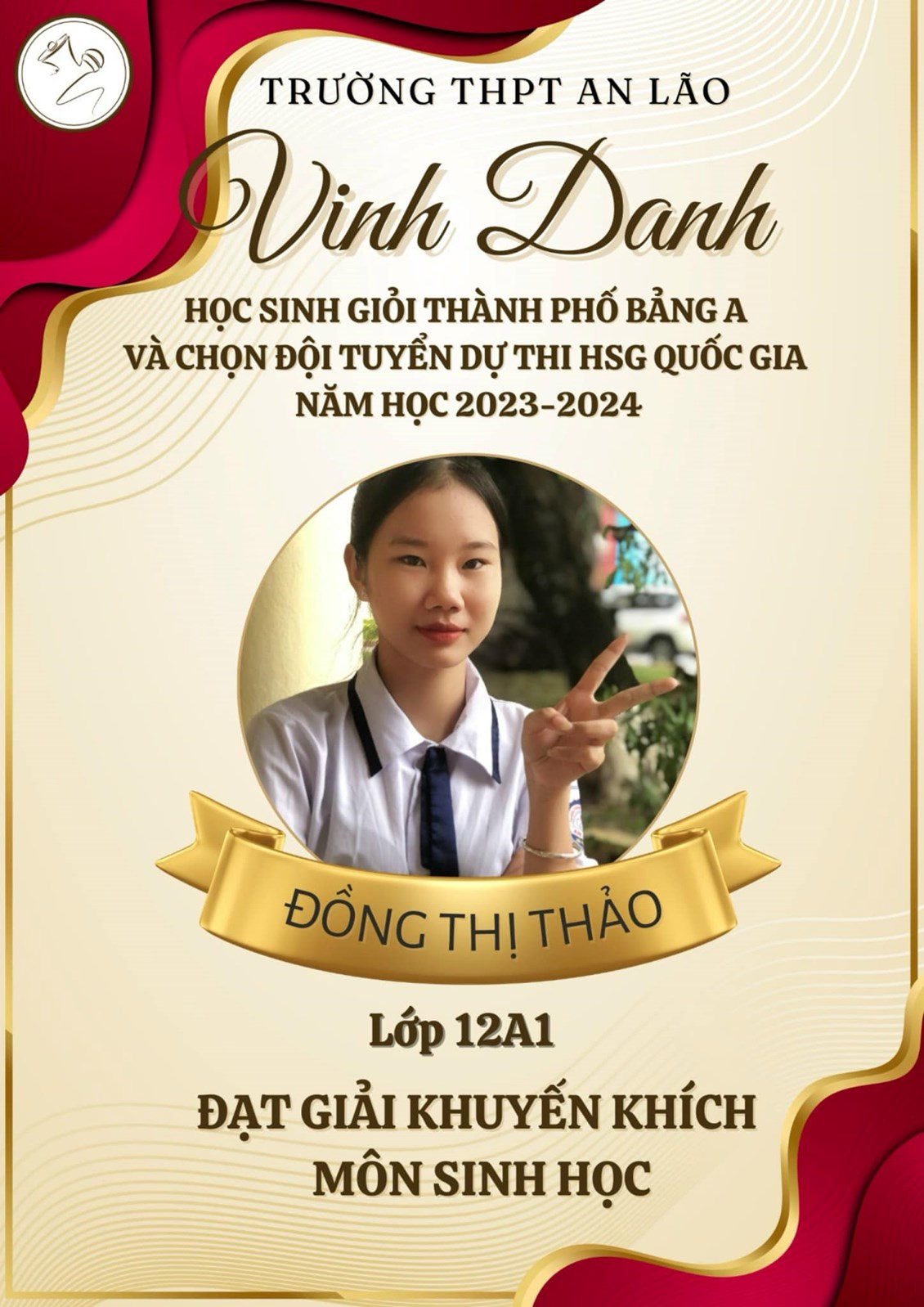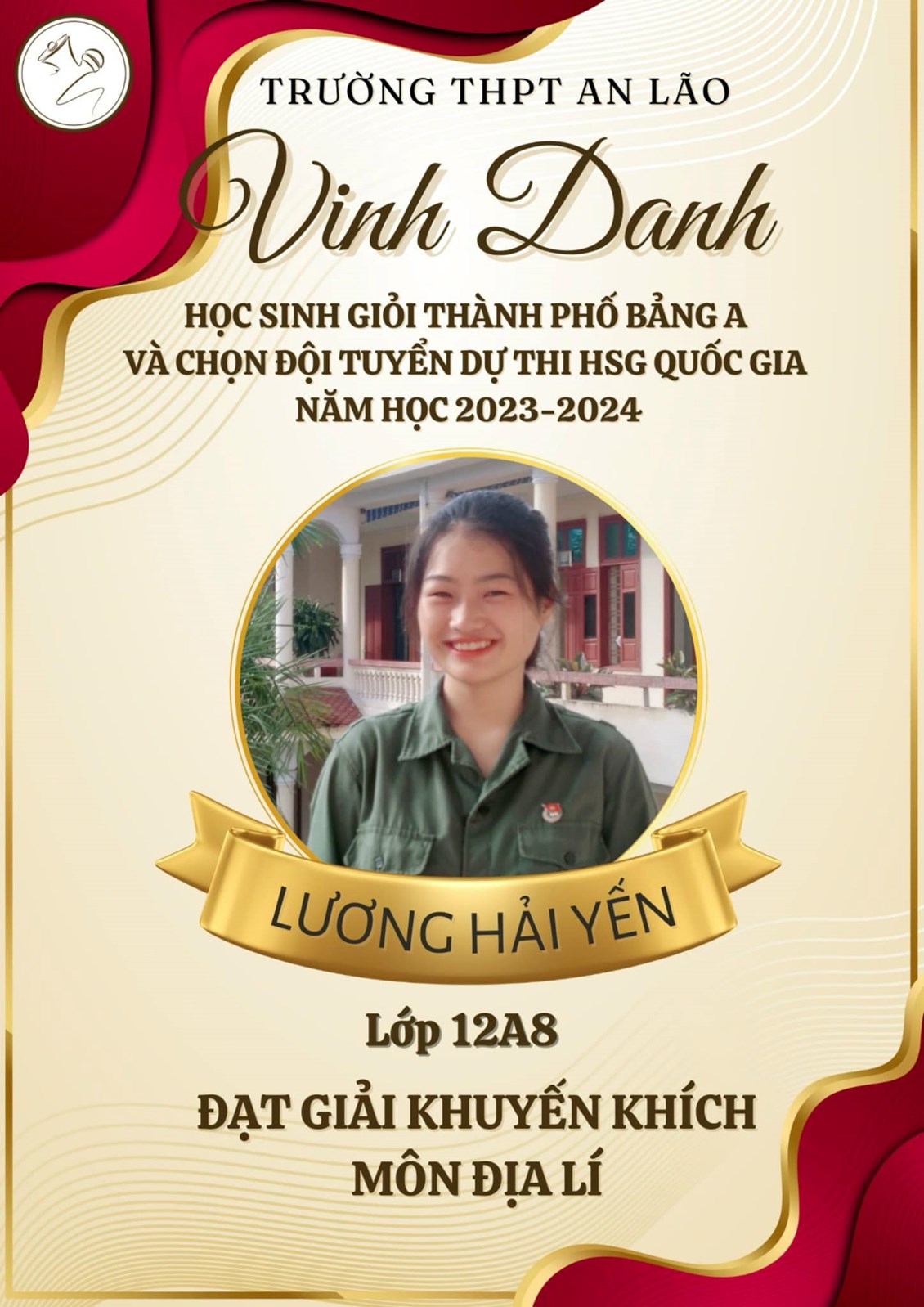 mừng các em học sinh đã xuất sắc đạt giải trong kì thi chọn HSG cấp thành phố bảng A. Với sự mở màn vô cùng ấn tượng đó, chắc rằng năm học 2023 – 2024 sẽ là năm học thành công rực rỡ, tiếp nối truyền thống vẻ vang của trường THPT An Lão!