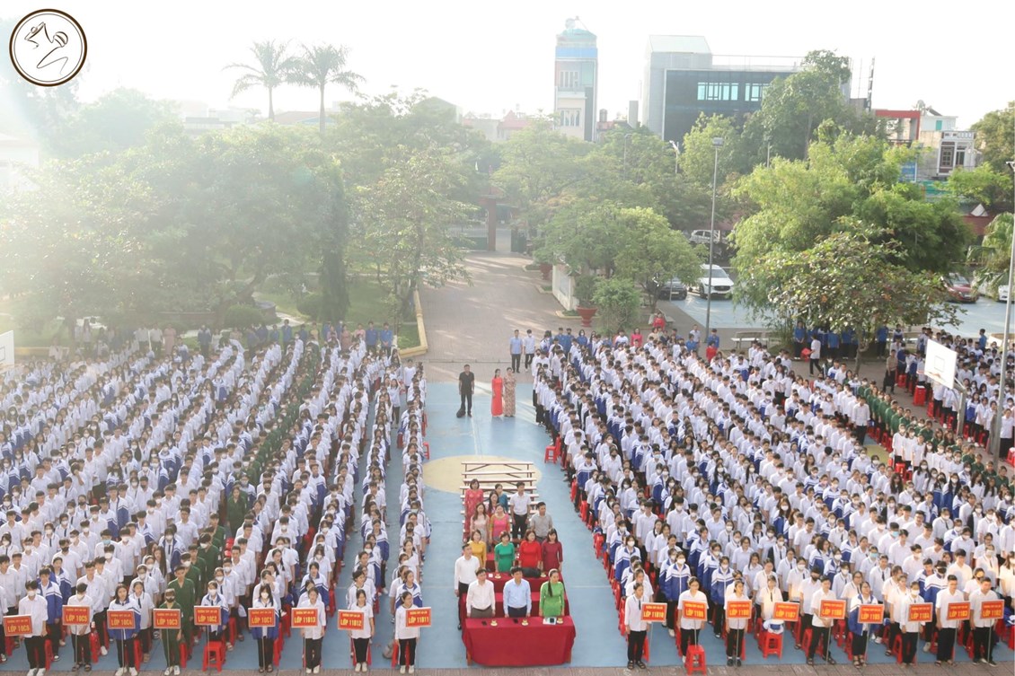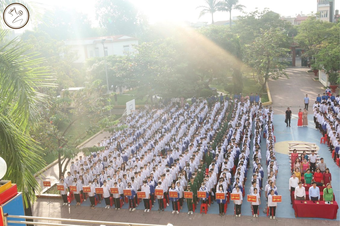 Tại buổi chào cờ có sự hiện diện của thầy Trần Đức Ngọc - Bí thư Đảng uỷ - Hiệu