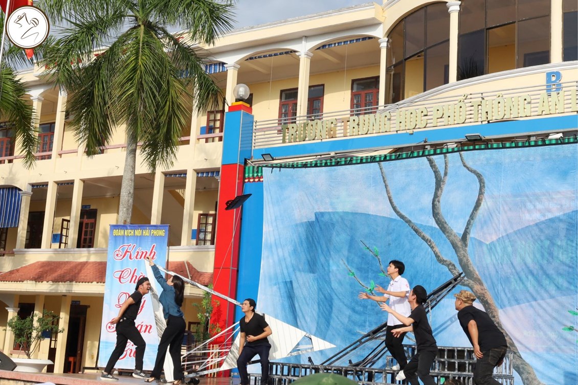Toàn trường THPT An Lão đã xem vở kịch nói “Đợi đến mùa xuân” do đoàn kịch nói HP biểu diễn tại sân trường với chủ đề liên quan đến ngành giáo dục.